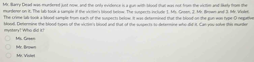 Solved: Mr. Barry Dead was murdered just now, and the only evidence is ...