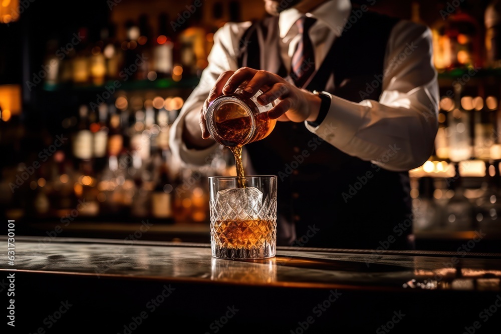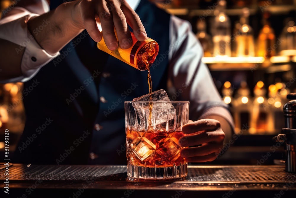 Premium Photo | Hand bartender skillfully pouring a cocktail into a glass