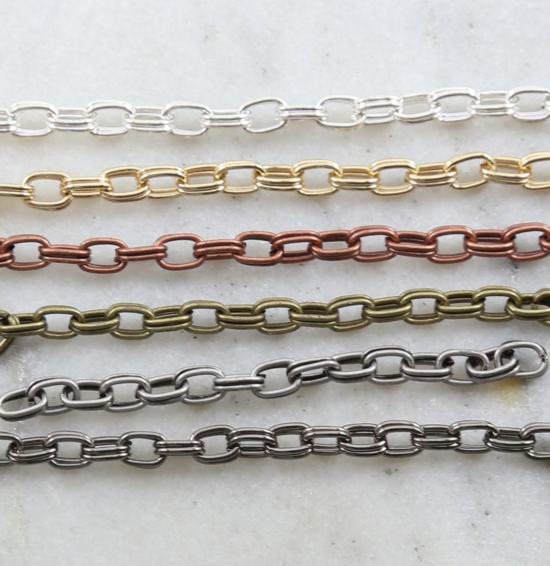 Base Metal Thick Rectangular Double Lined Chain in 6 Finishes / Chain ...