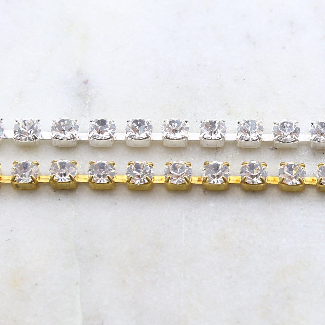 Base Metal Gold or Silver Plated Clear Austrian Rhinestone Chain /chain ...