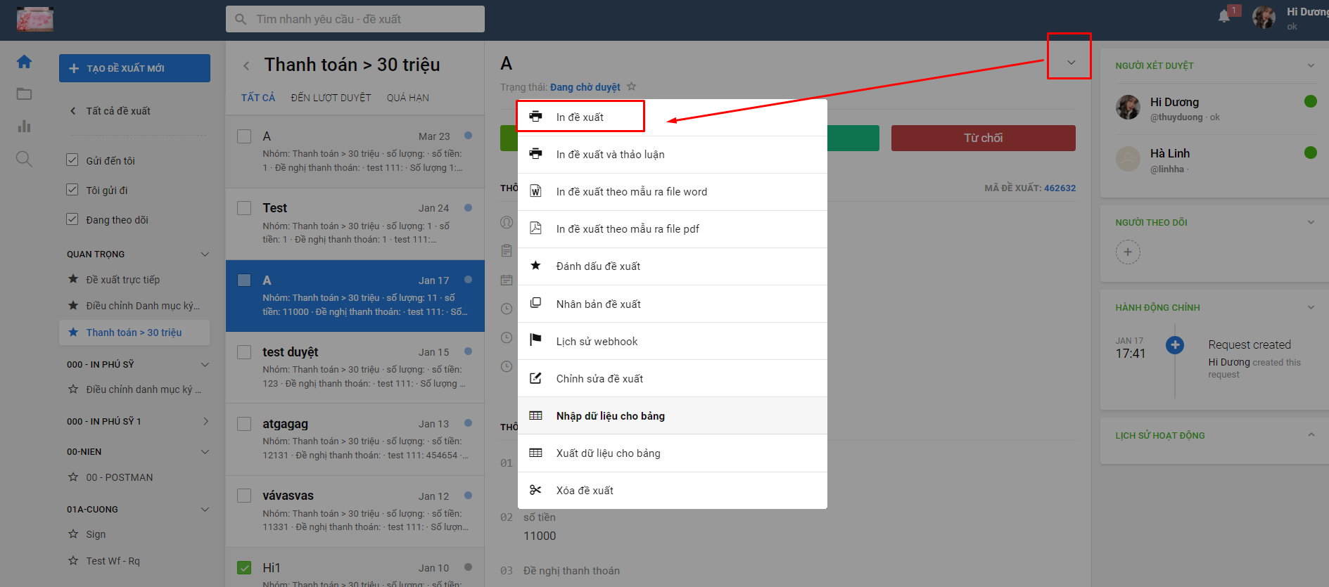 Base Request: Cách duyệt/ chuyển tiếp/ từ chối 1 đề xuất : Base.vn