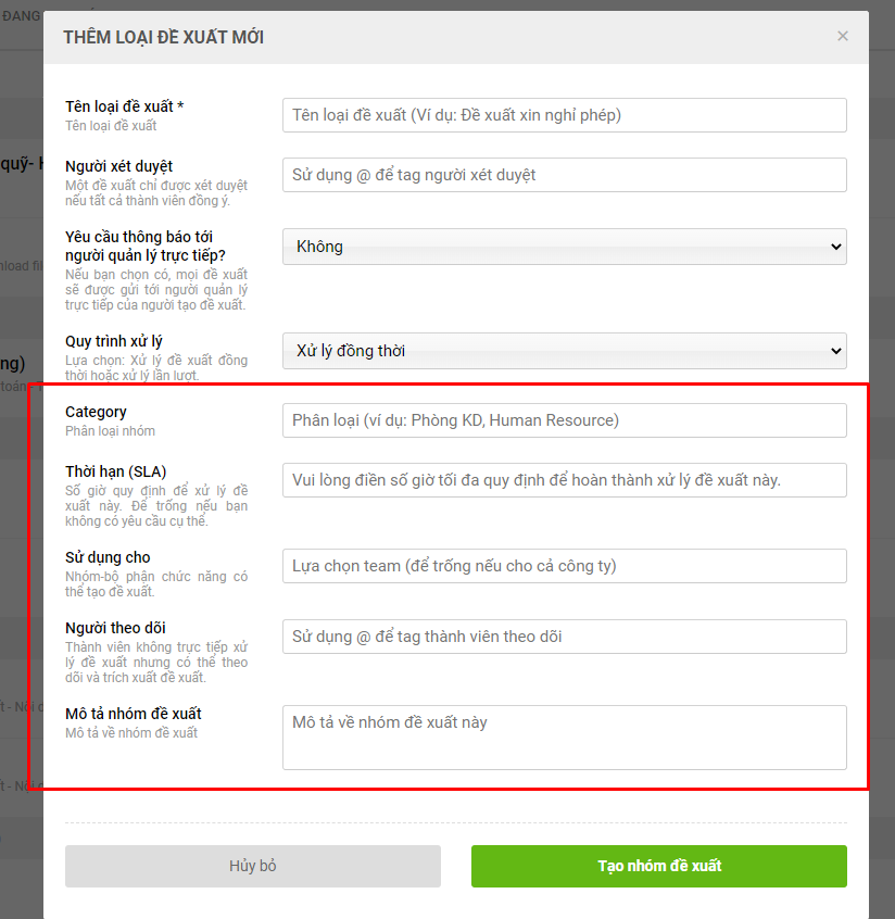 Base Request: Tạo nhóm đề xuất trên Request : Base.vn