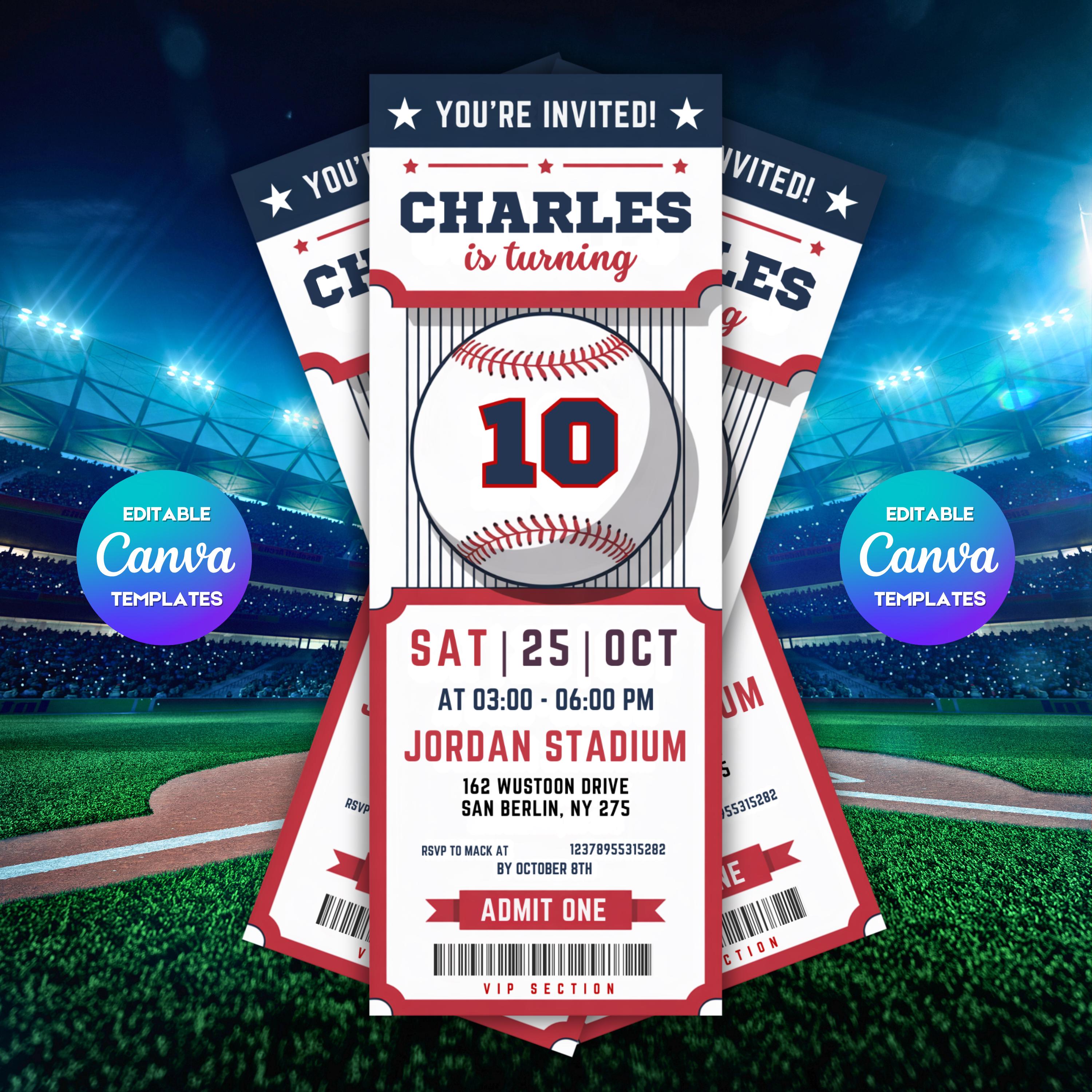 Editable Baseball Birthday Invitation Ticket, Custom Sports Party ...