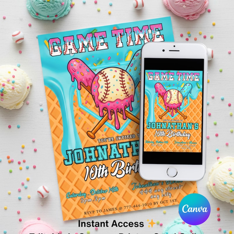 Editable Baseball Birthday Invitation, Baseball Invites, Instant ...