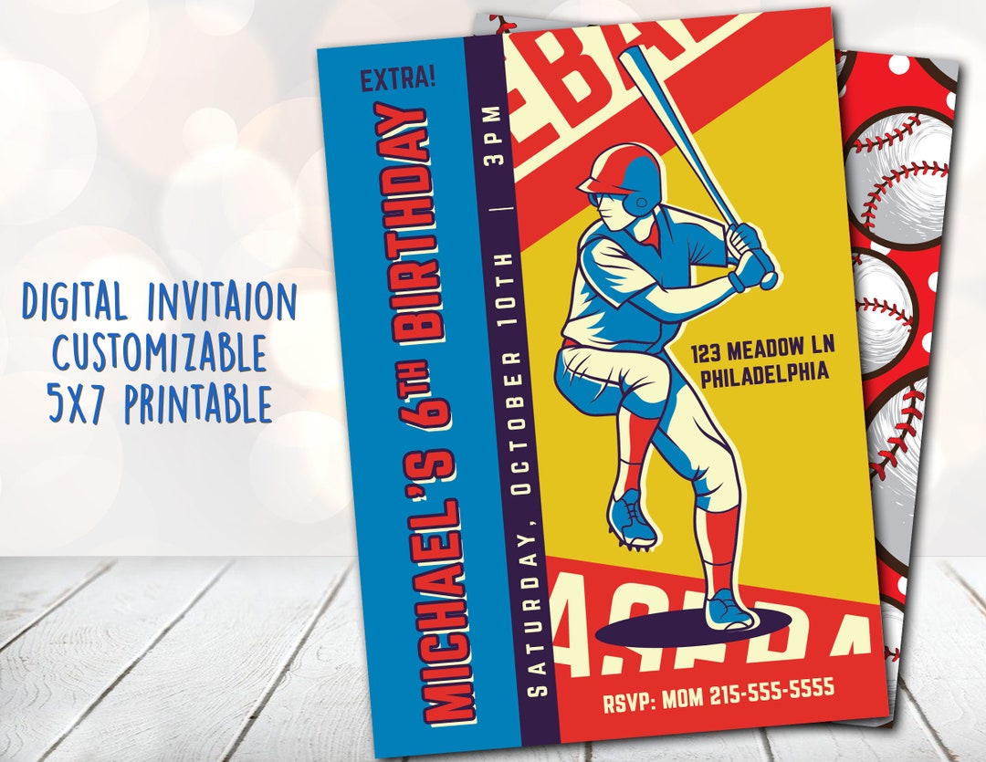 Custom Baseball Party Invitation custom Digital Download for Birthdays ...