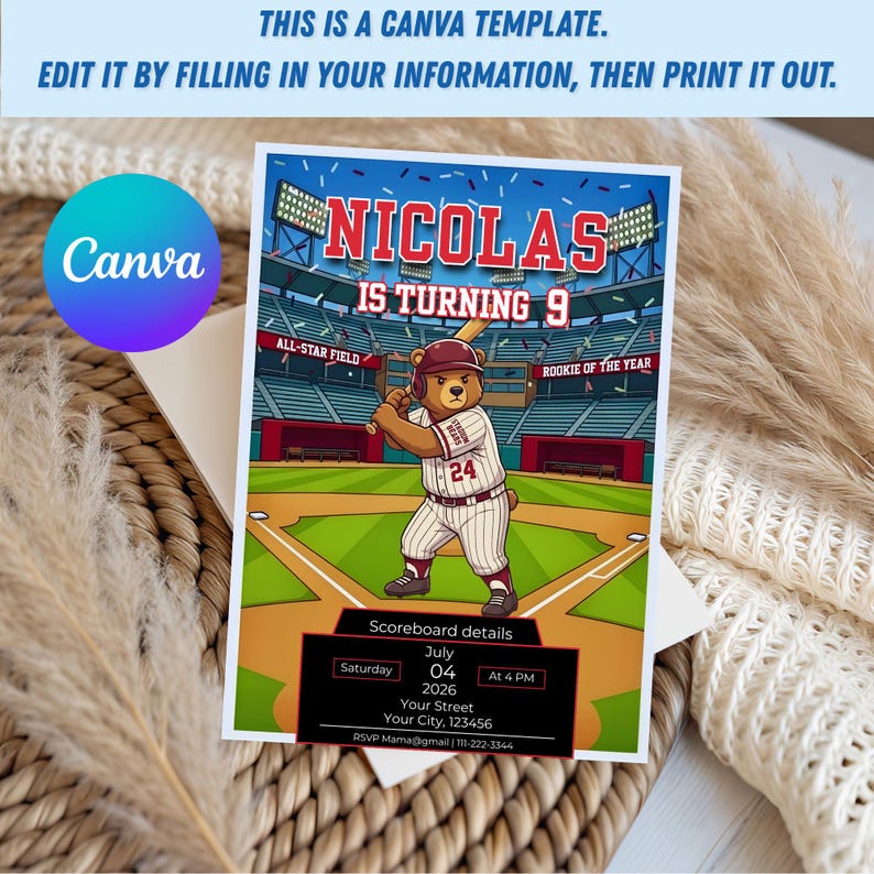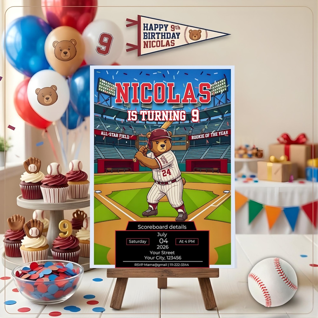 Baseball Birthday Invitation, All-star Stadium Theme, Editable Party ...