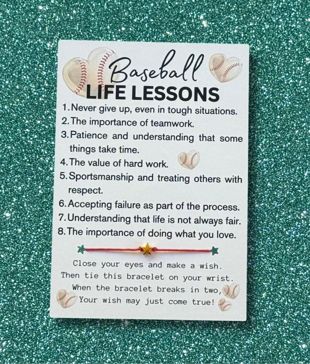 Baseball LIFE LESSONS Card, Wish Bracelet, Baseball Gifts, End of ...