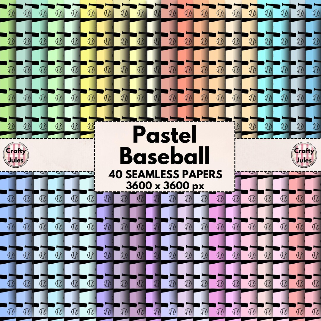 Seamless Baseball Patterns, 40 Printable Papers, Pastel Sport ...