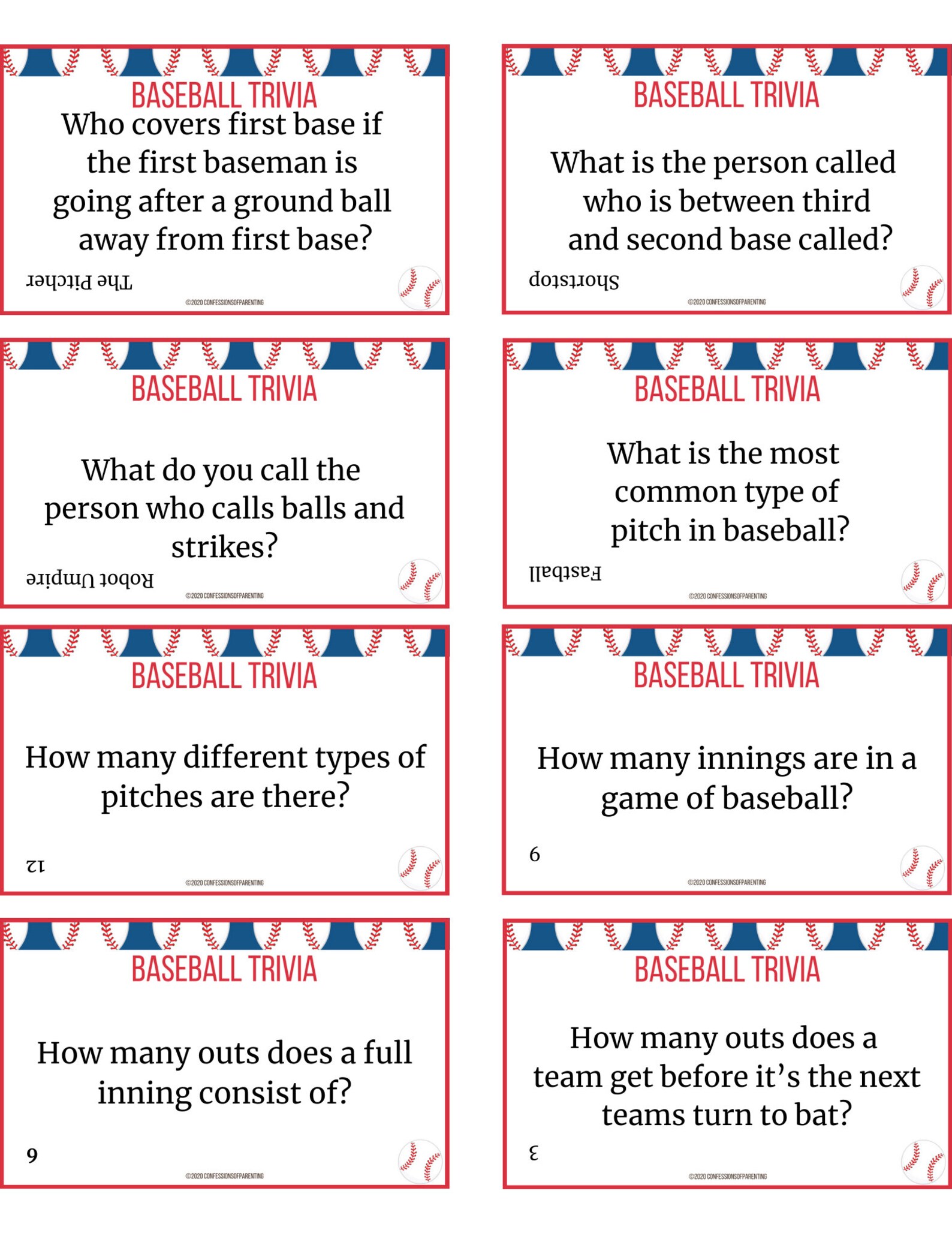 40+ Printable Baseball Trivia Questions| Baseball Trivia Cards for Kids ...