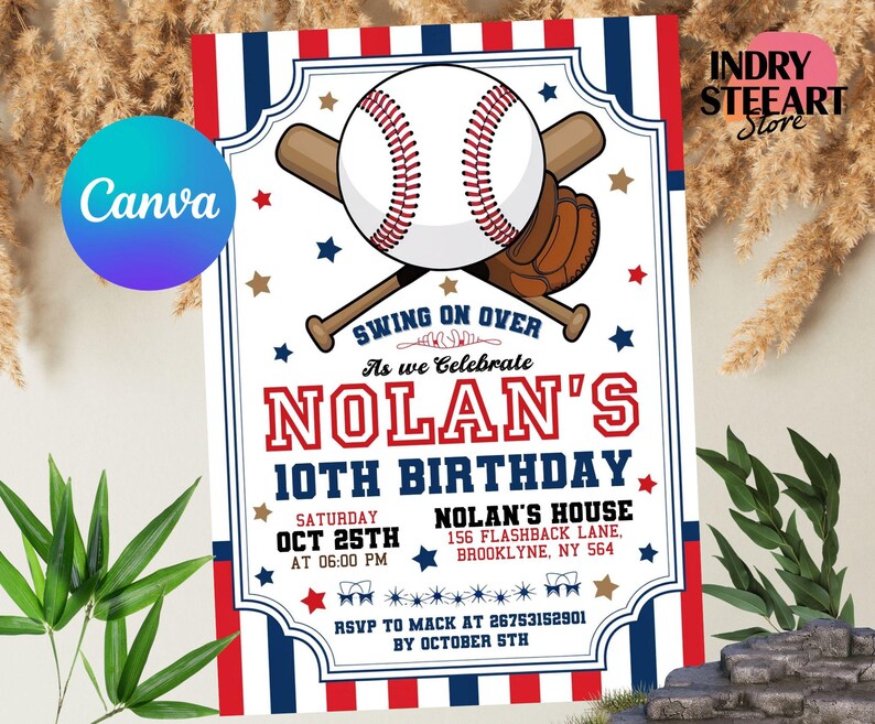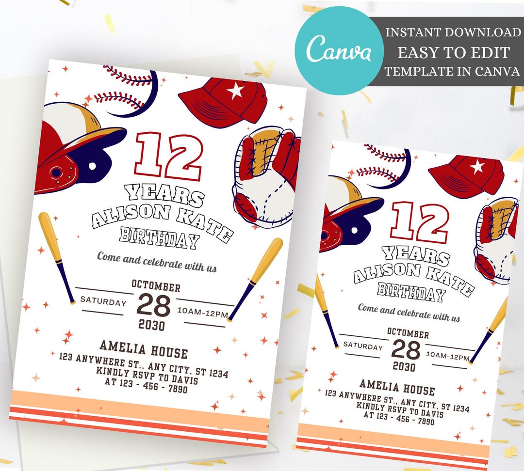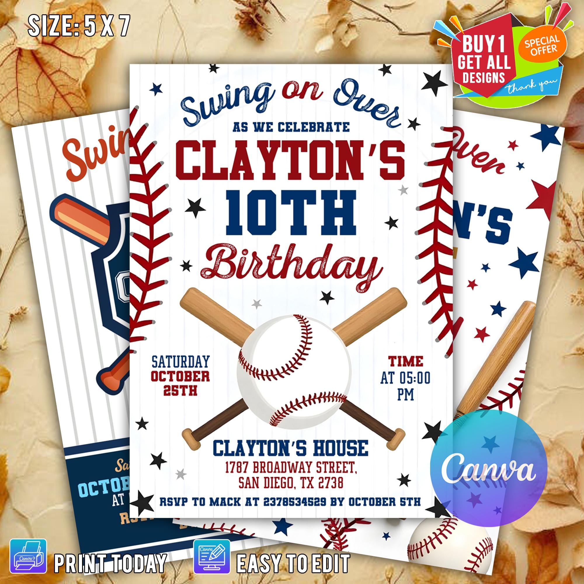 Baseball Themed Party Invitation - Edit With CANVA! Easily Edit ...