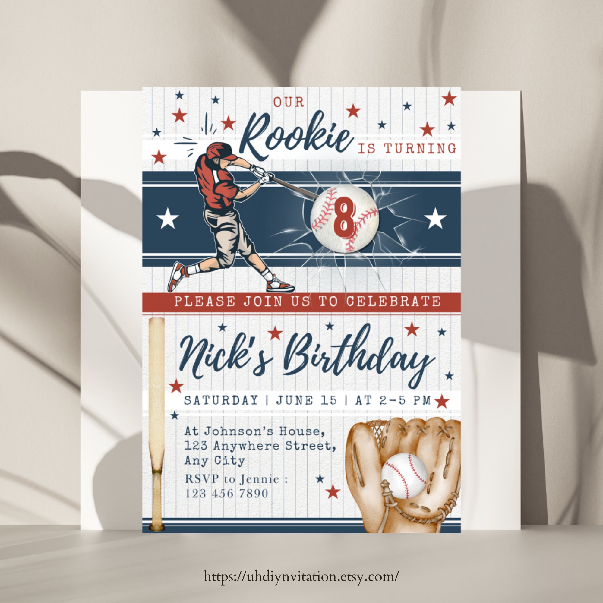 EDITABLE Baseball Party Invitation for ANY AGE Birthday Invite Rookie ...