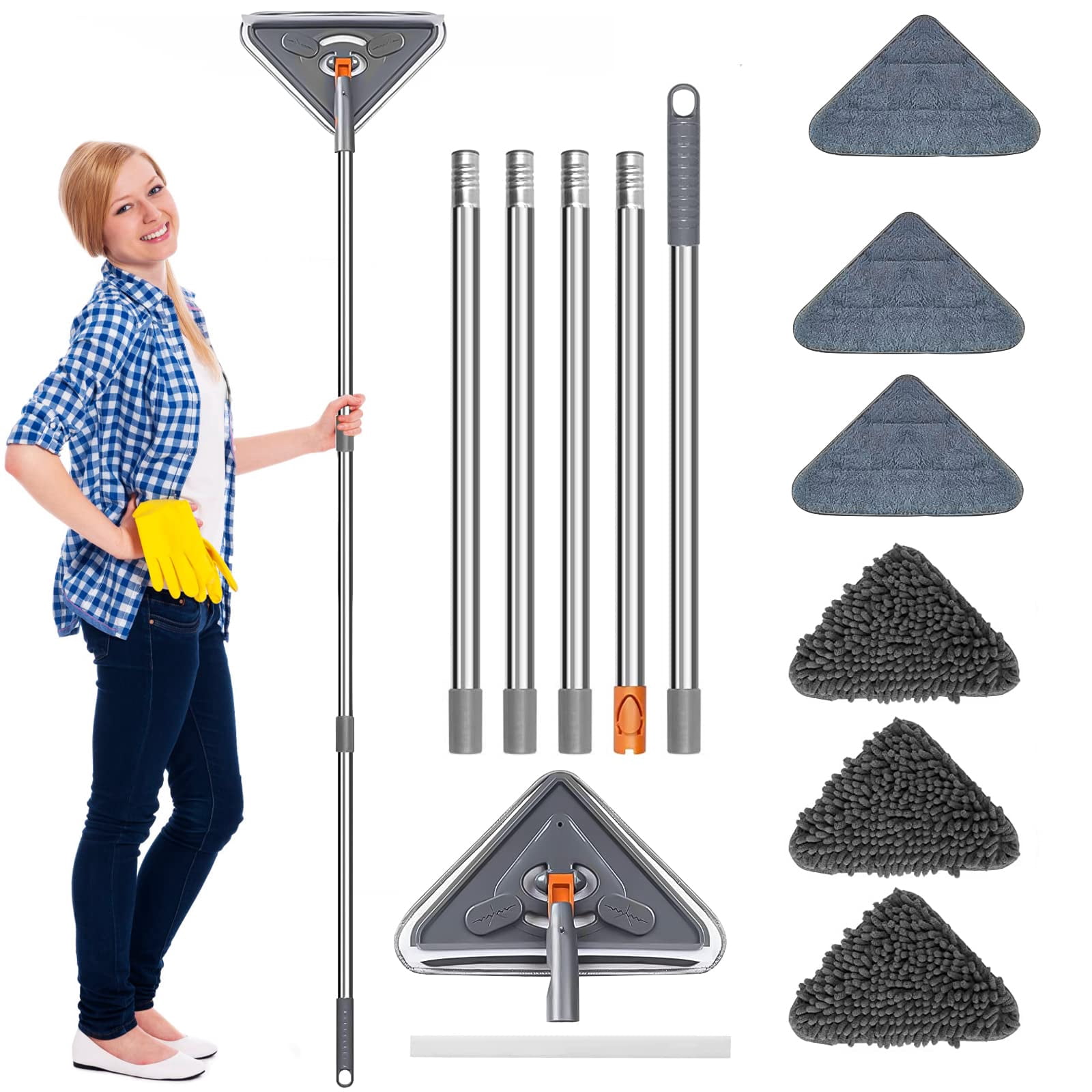 Wall Cleaner with Long Handle - 92 Inches Wall Mop Triangle Rotatable ...