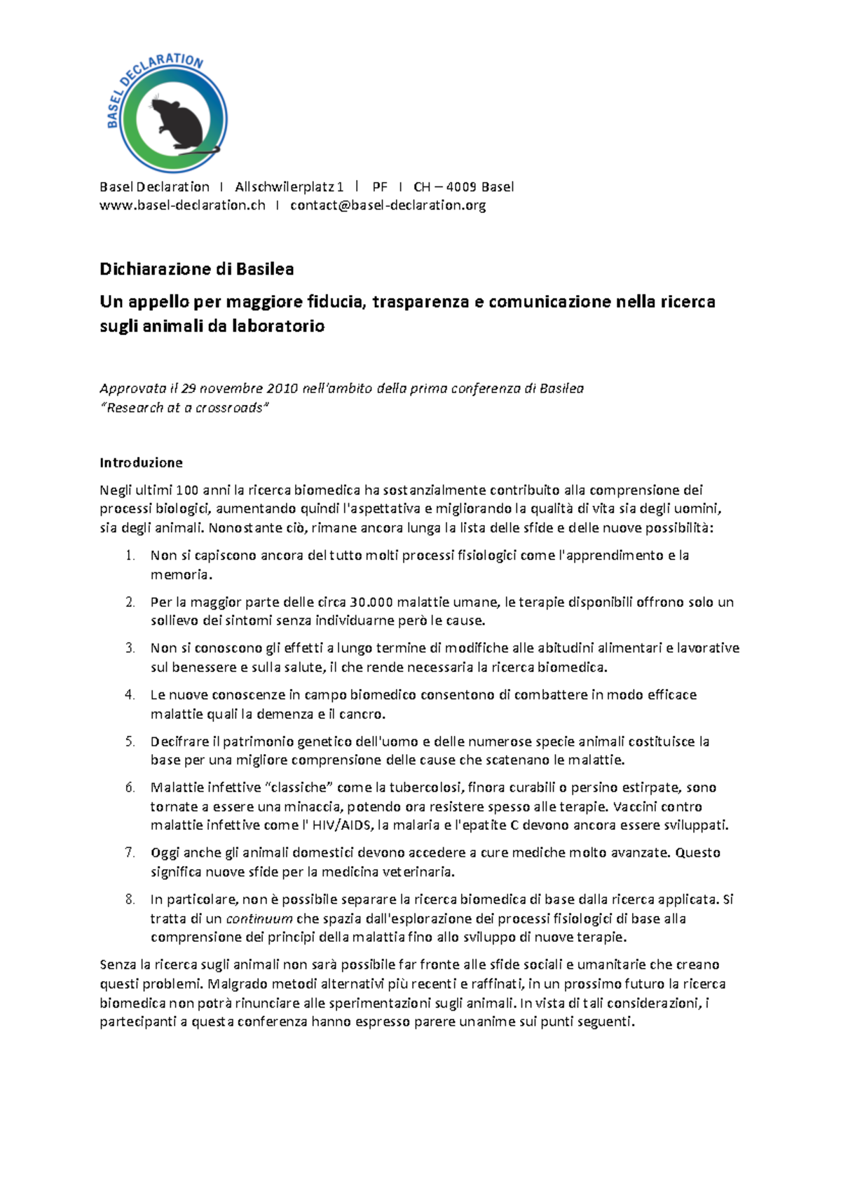 Basel declaration it - Basel Declaration I Allschwilerplatz 1 I PF I CH ...