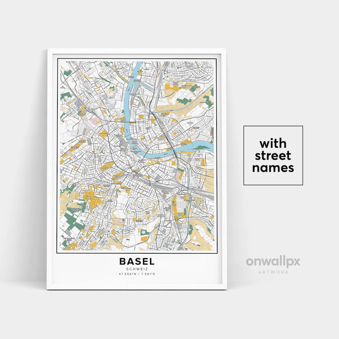 Basel Map Print, Street Names Basel Print, Printable Map of Basel, City ...