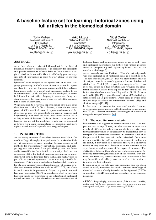 (PDF) A baseline feature set for learning rhetorical zones using full ...