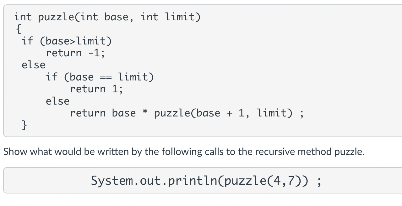 Solved int puzzle(int base, int limit) { if (base>limit) | Chegg.com