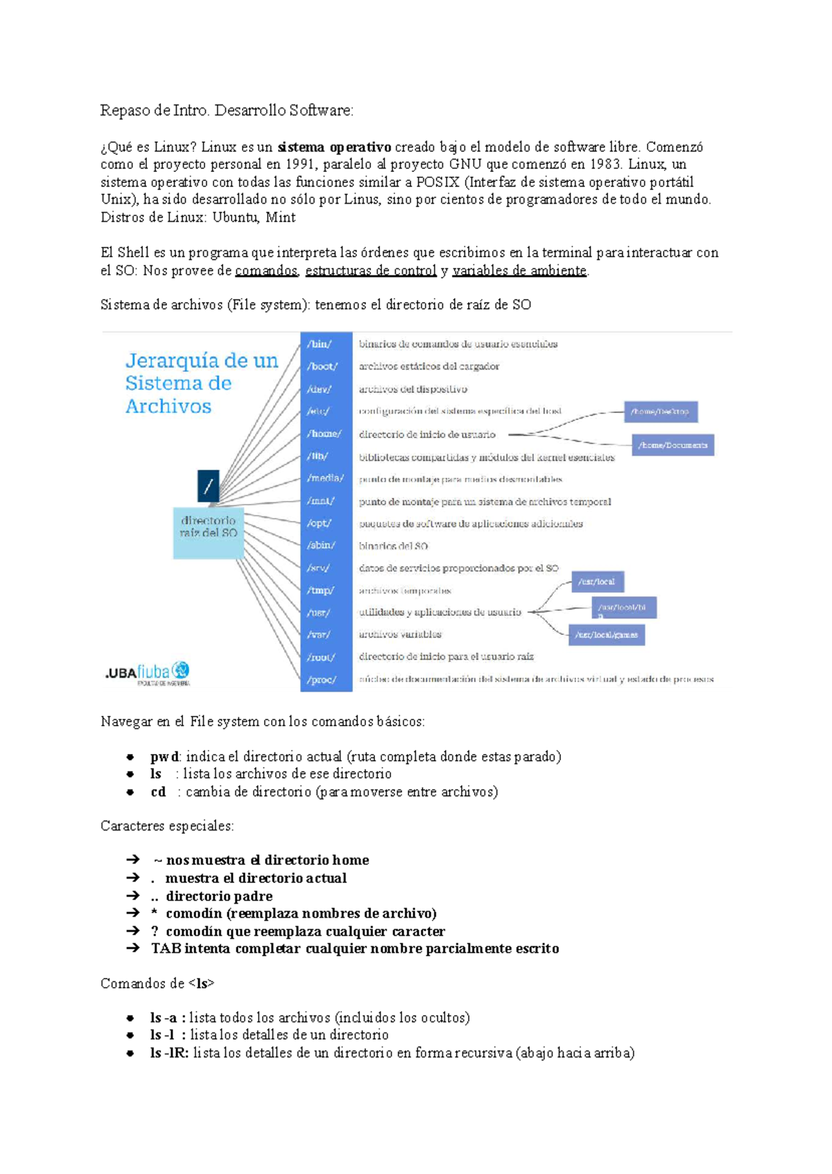 Repaso de Intro. Desarrollo Software: Linux y Comandos Esenciales - Studocu