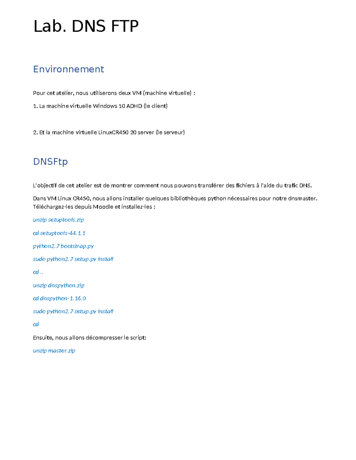 Atelier Lab. DNS FTP avec Windows 10 et Linux CR450 - Studocu