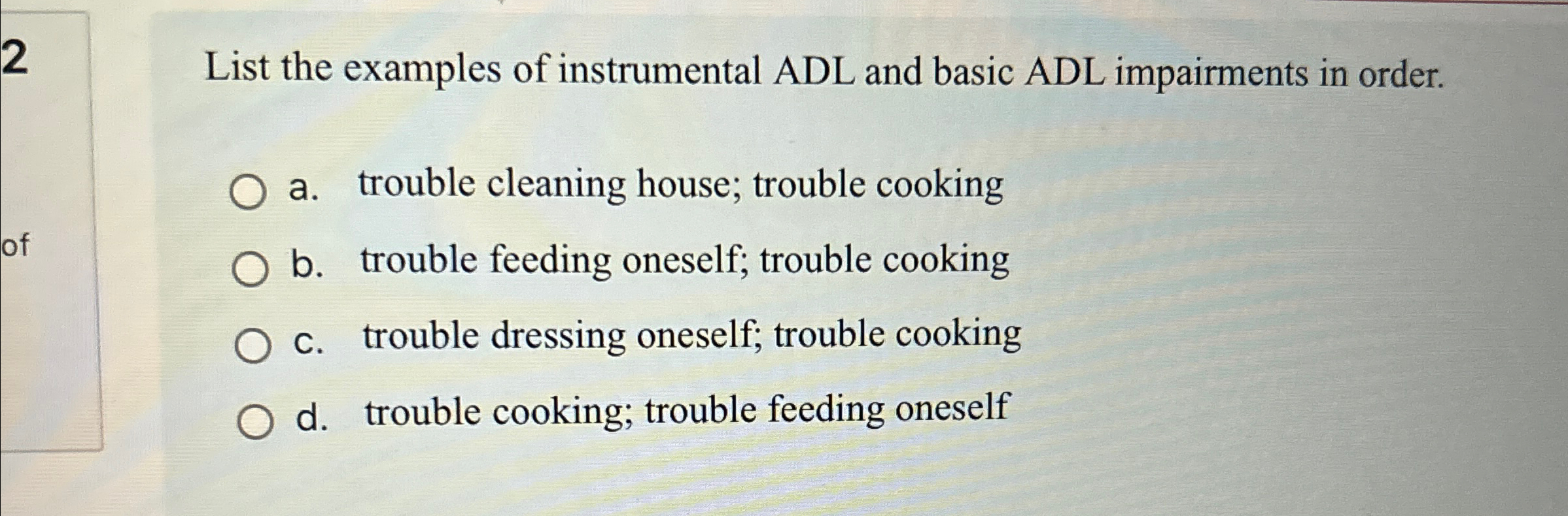 Solved 2 List the examples of instrumental ADL and basic | Chegg.com