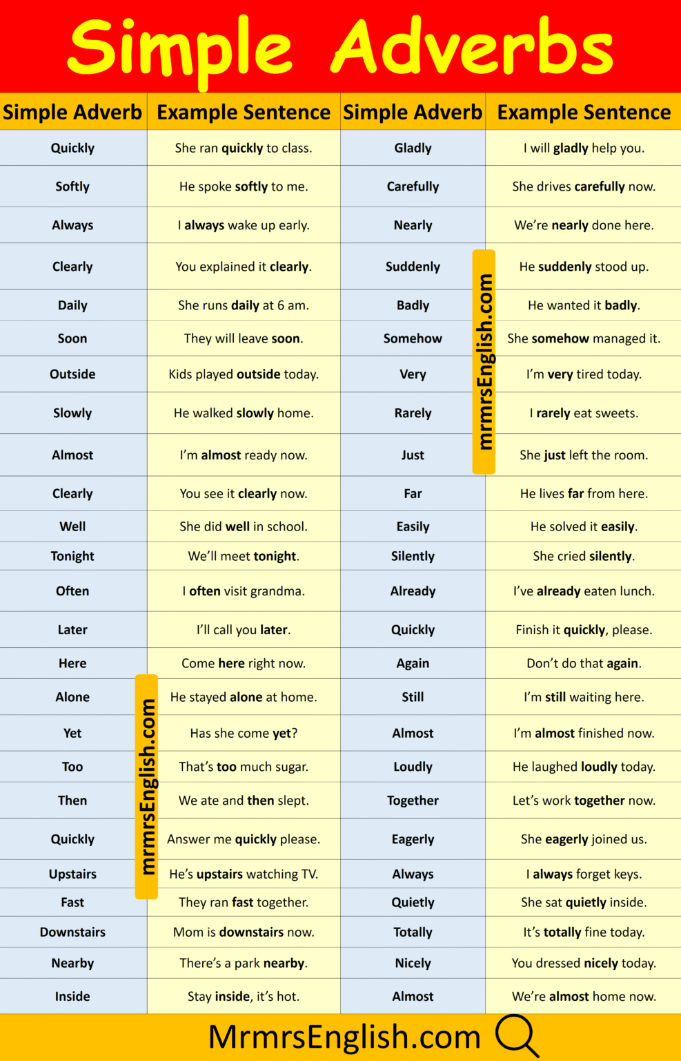 500 Simple Adverbs Examples Sentences in English with Pictures - MR MRS ...