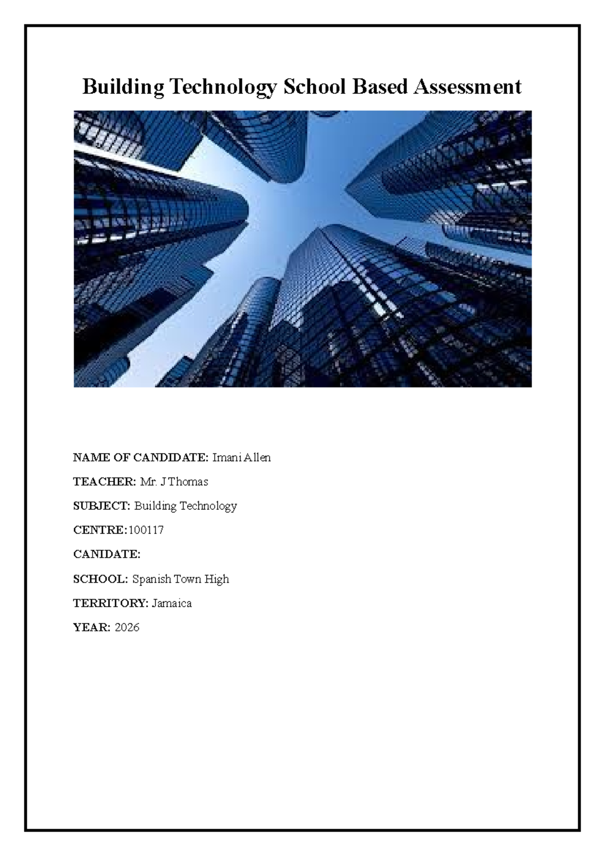 Building Technology School-Based Assessment (BT 2026) - Studocu