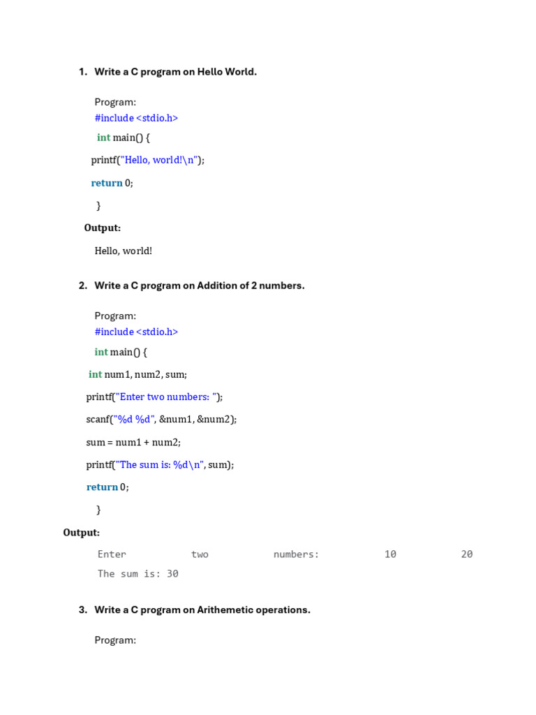 C Programming Basics: Hello World & More | PDF