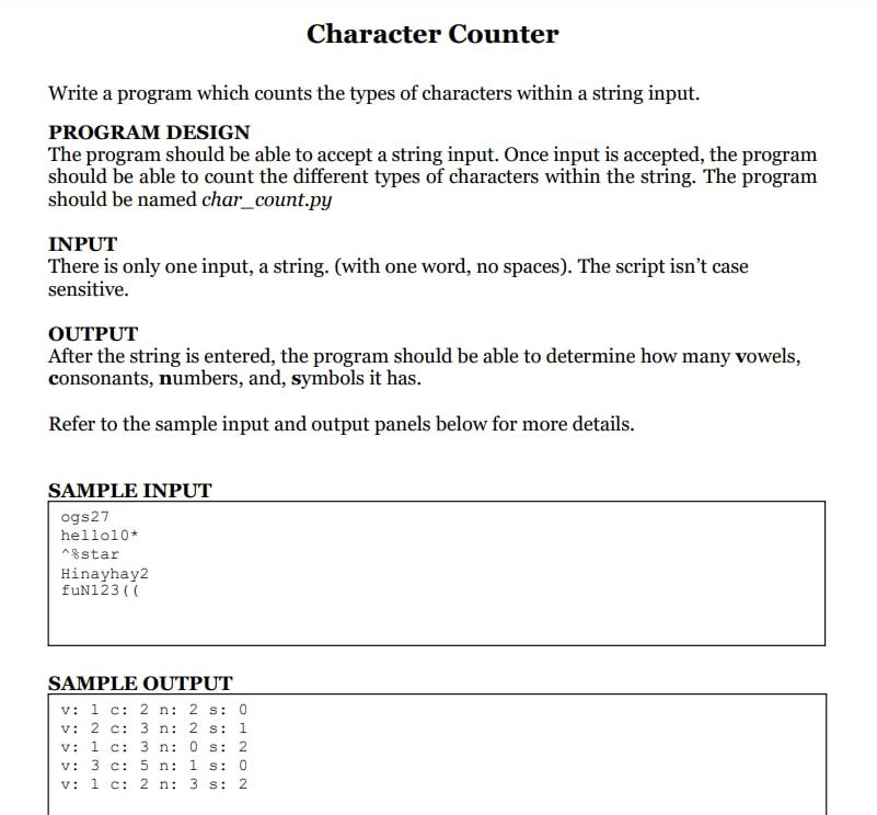 Solved 1 // This program prompts the user for a character | Chegg.com
