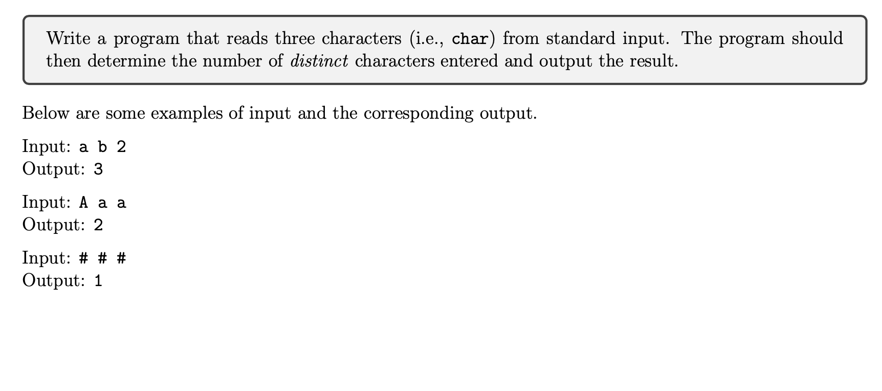 Solved Write a program that reads three characters (i.e., | Chegg.com