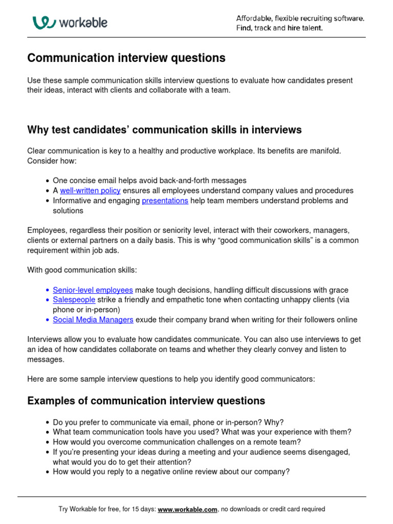 Communication Interview Questions and Answers - Worksheets Library