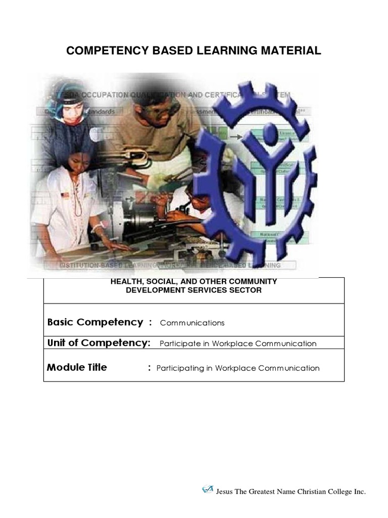Basic Competency 1 to 3 (Participate Workplace Communication, Work in a ...