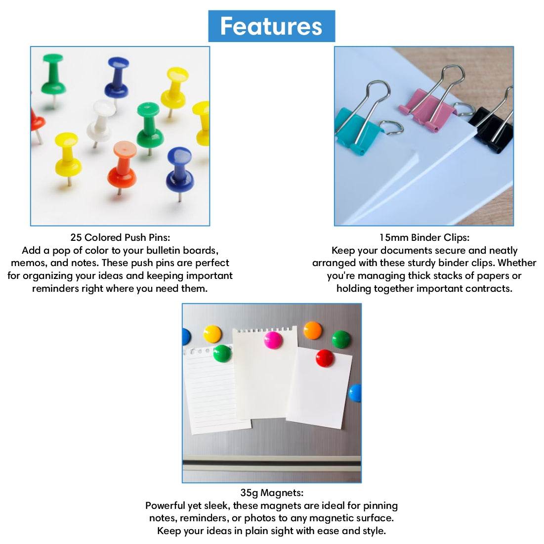 Worldone Essential Stationery Kit with 25 Pcs Colored Push Pins, 12 Bi ...