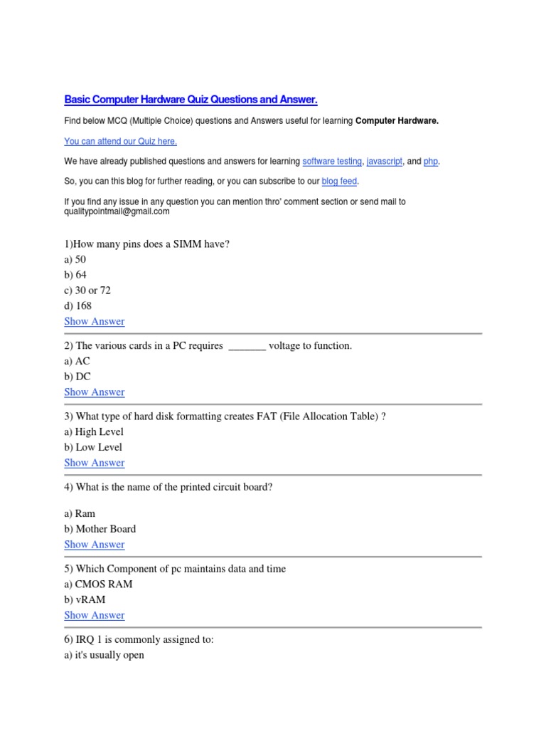 Basic Computer Hardware Quiz Questions And Answers at Kirsten Nord blog