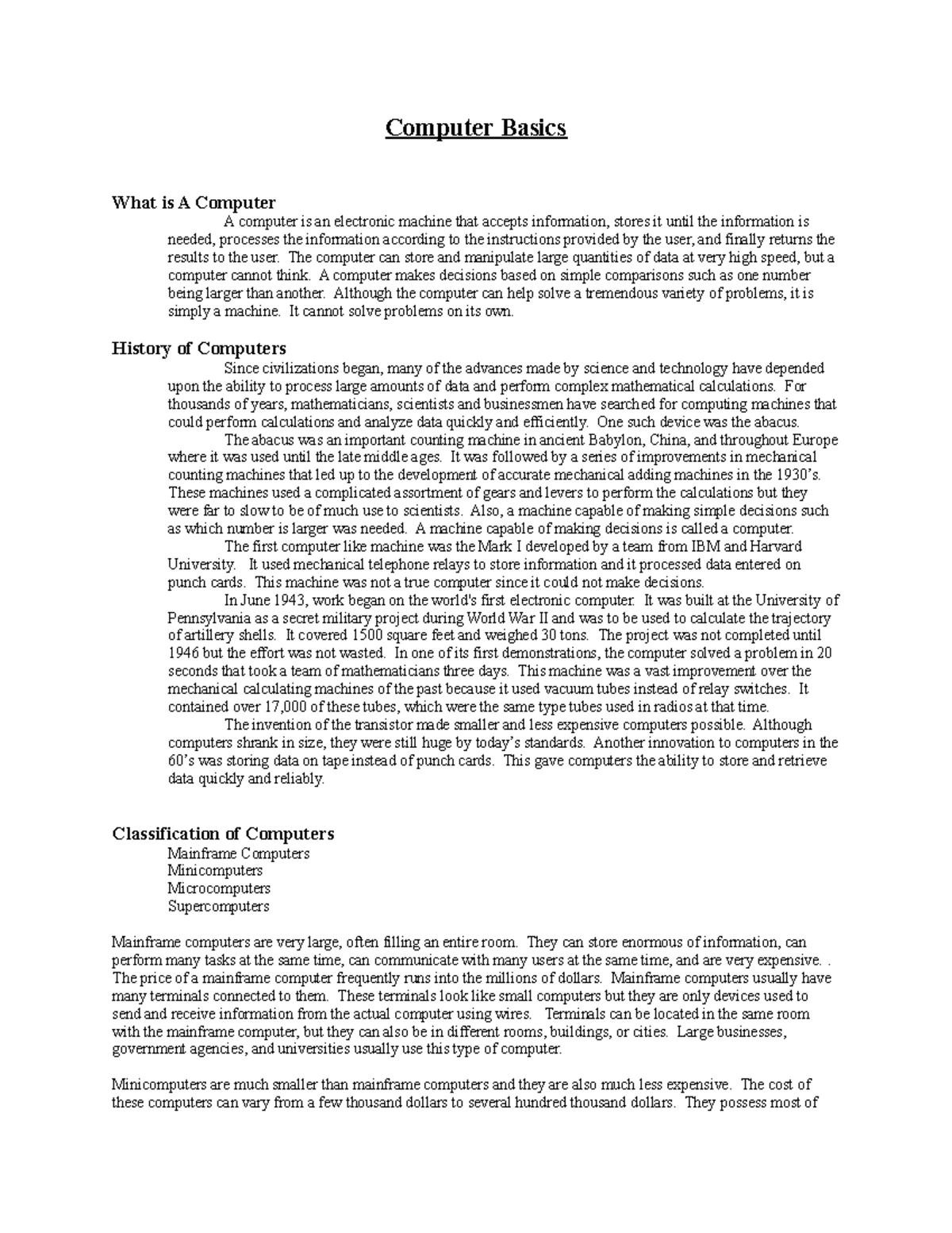 Basics of computer Notes - Basics of Computer INTRODUCTION TO COMPUTERS ...