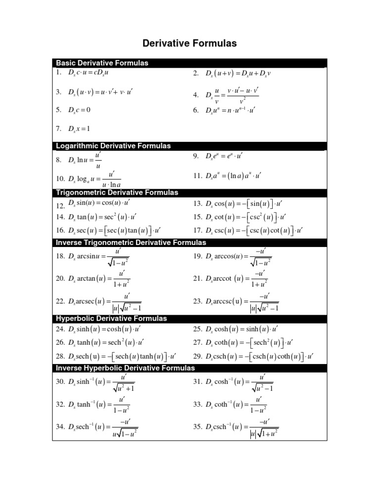 Free Printable Derivatives Formula Chart (PDF) Math Love, 48% OFF