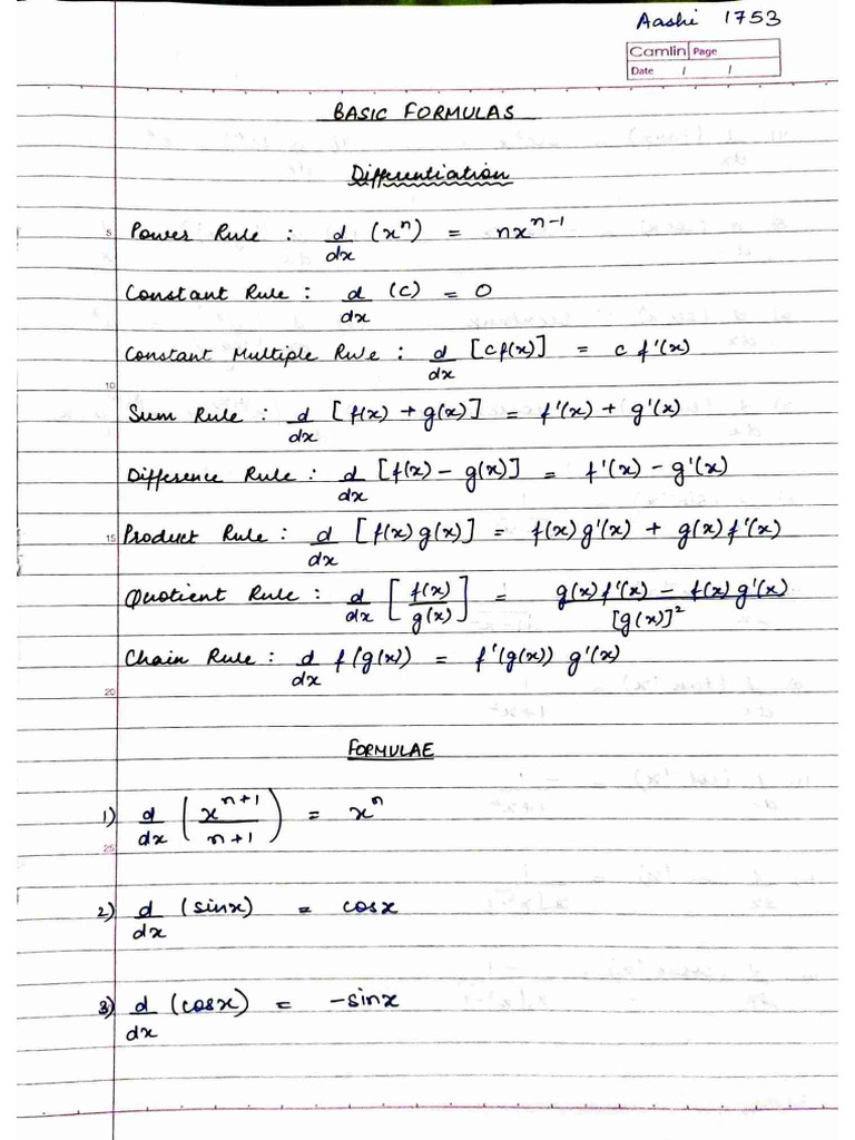 Formulae For Differentiation - Physics - Notes - Teachmint