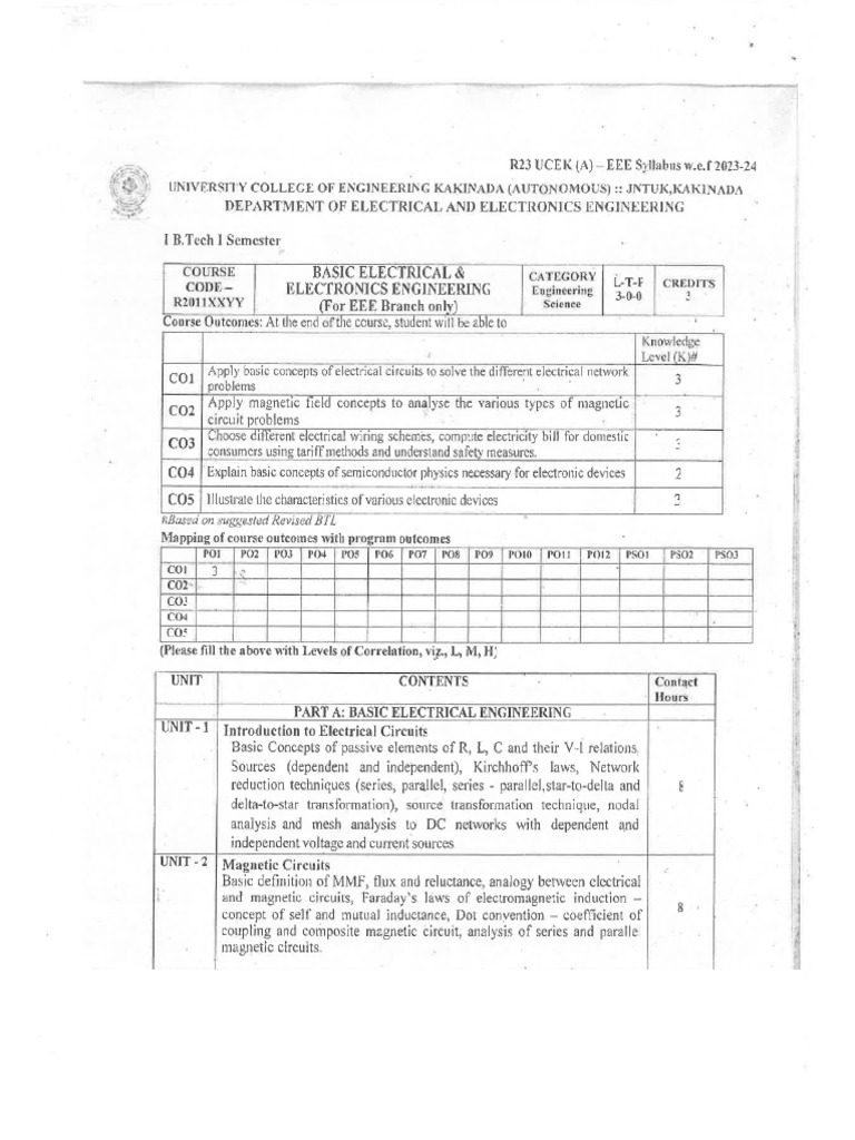Basic Electrical For EEE Syllabus | PDF