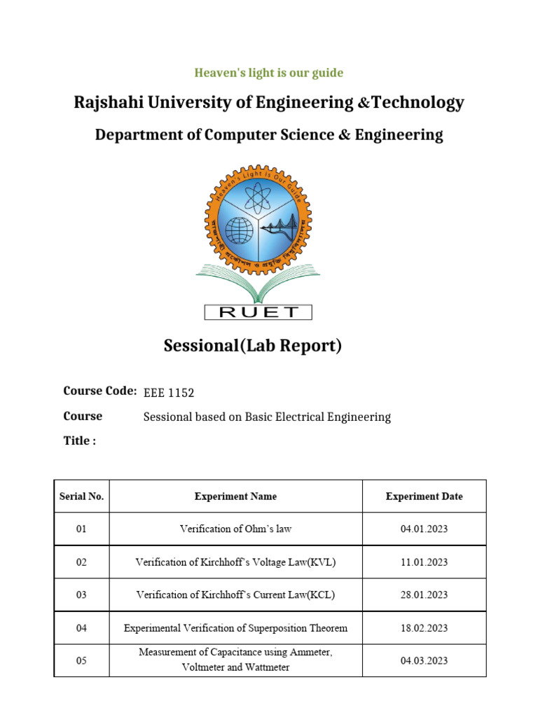EEE Lab Report Final - EEE 0713 1202 Basic Electrical Engineering - Studocu