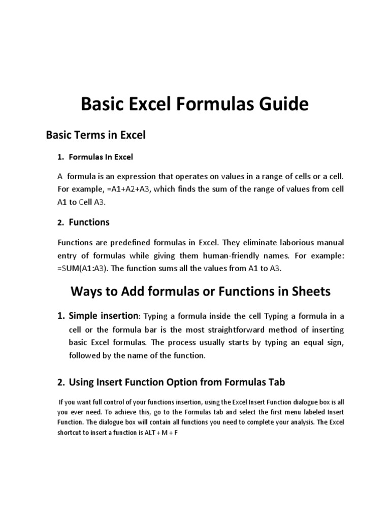 Basic Excel Formulas Guide | PDF | Microsoft Excel | Spreadsheet
