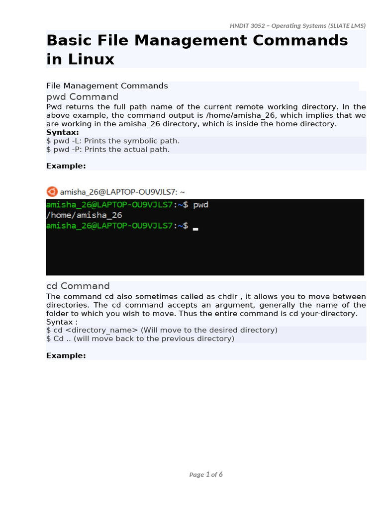 (PDF) Using File Management Commands Linux Basic file management