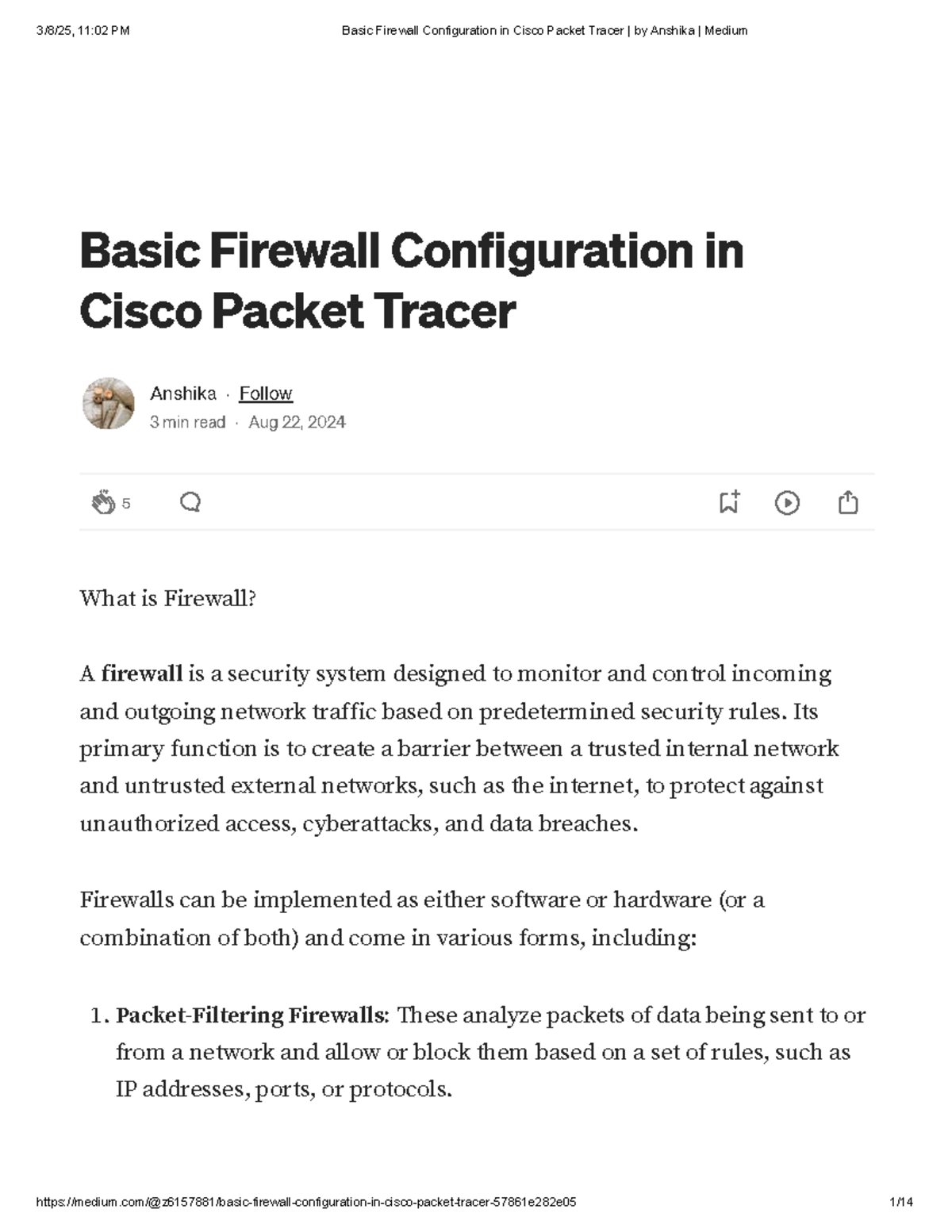 Basic Firewall Configuration in Cisco Packet Tracer by Anshika Medium ...
