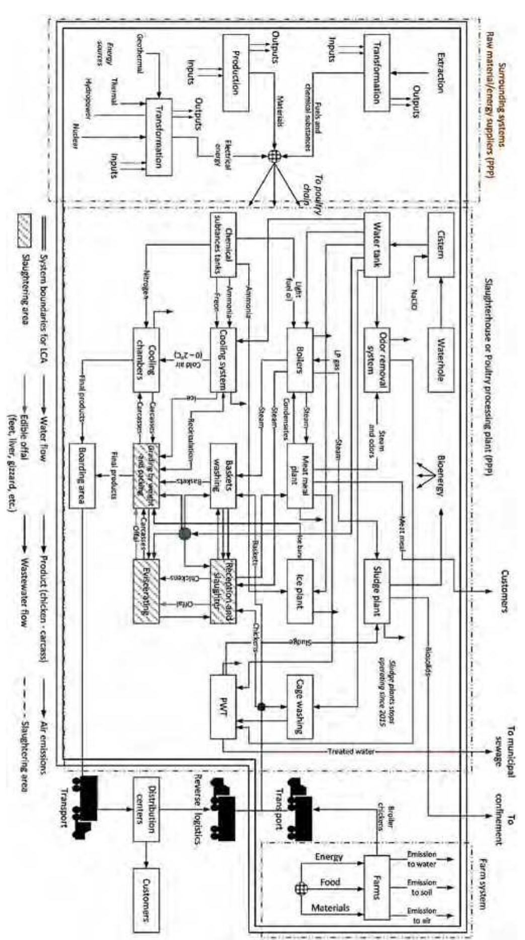 System boundaries and flowchart of the chicken meat