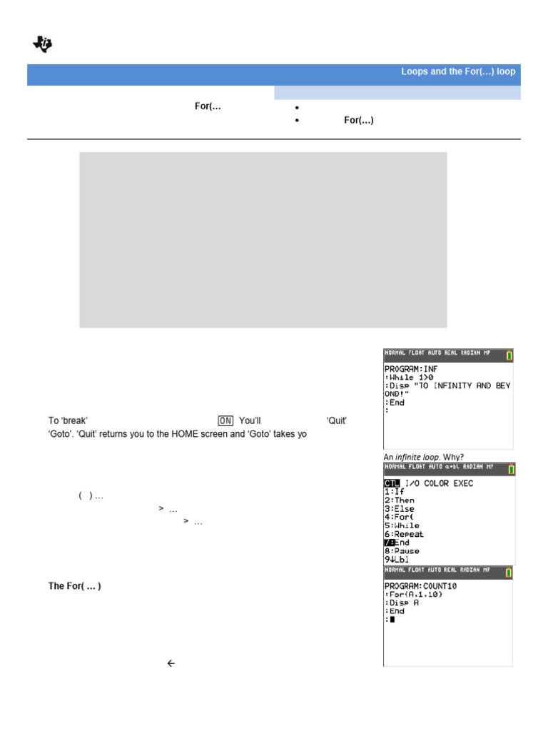 TI-BASIC For Loop Tutorial | PDF | Control Flow | Computer Programming