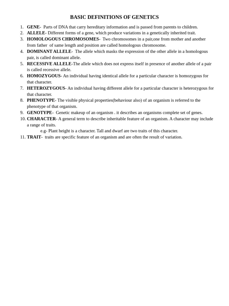 Review Notes on Basic Terms and Definitions of Genetics | 447 380 - Docsity