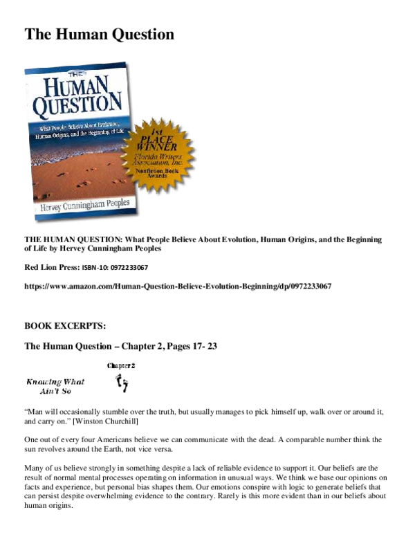 The Human Question: What People Believe About Evolution, Human Origins ...