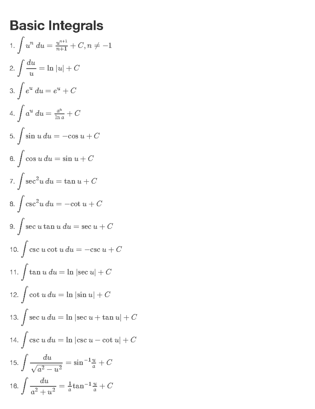Table of Integrals: Basic Forms for Calculus Students | Course Hero
