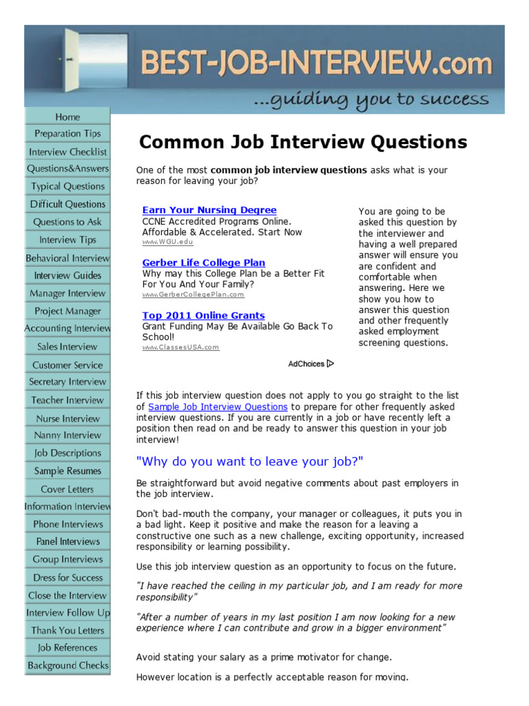 Common Interview Jobs Question - Top 27 Common Job Interview Questions ...