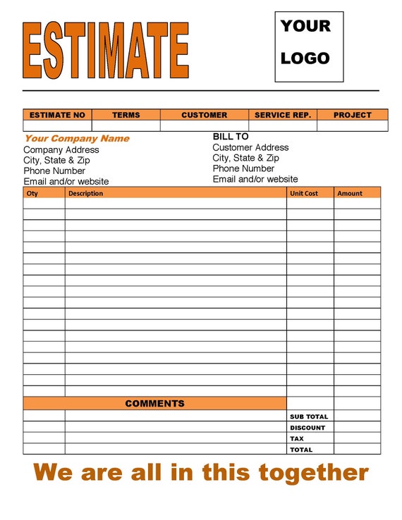 Estimate invoice Templates PRINTABLE FORM Blue Spring - Etsy