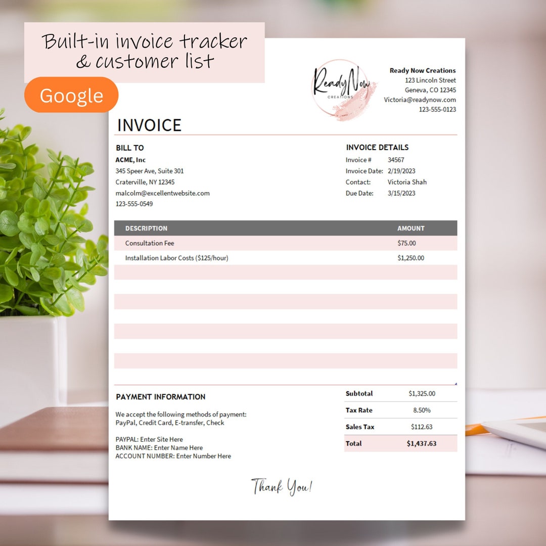 Invoice Tracker Spreadsheet Template. Excel Google Sheets. Customer ...