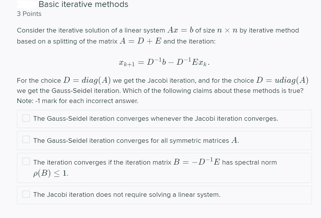 Solved Basic iterative methods 3 Points Consider the | Chegg.com