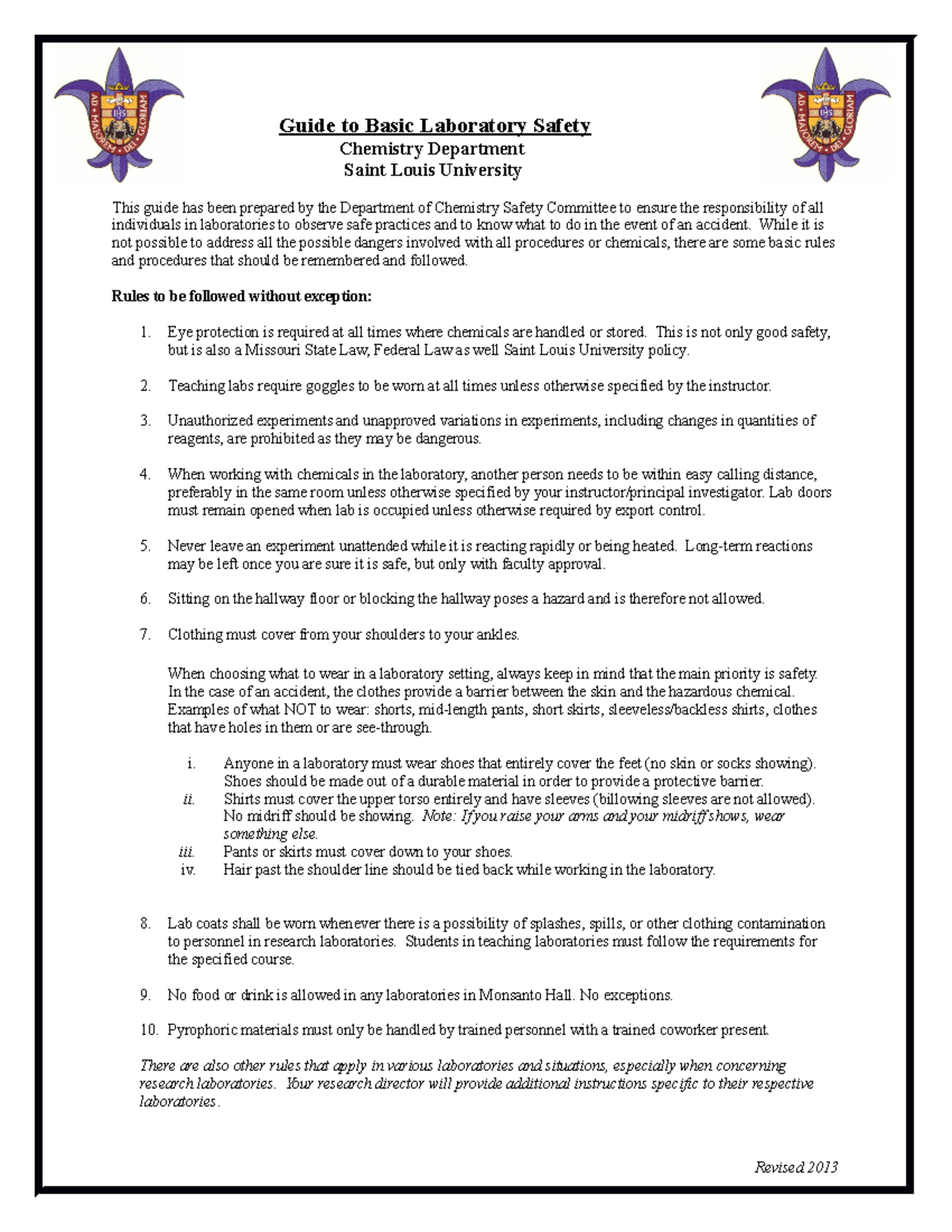 Basic Laboratory Safety Rules | PDF | Laboratories | Occupational ...